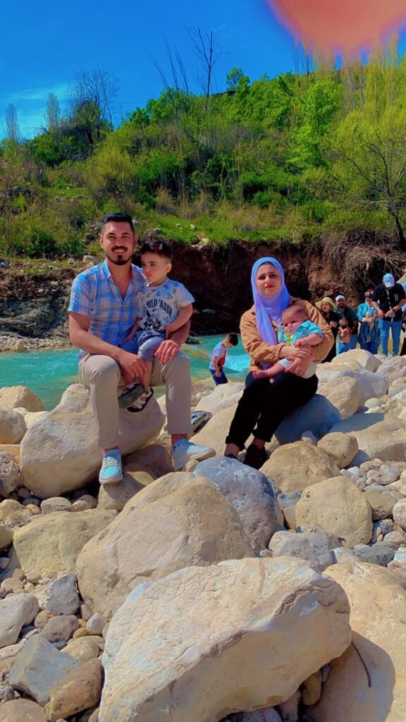 في هذه الصورة، تشرق روحي فرحًا وأنا أراكم في أحضان الطبيعة. سرى، ابنتي الغالية، تحمل أيهم بدفء الأم، وعلي، زوجها الصالح، يحتضن إبراهيم بثقة الأبوة. يا لها من لحظة تُعبّر عن الترابط الحقيقي، حين يكون الحب هو الرابط، والاحترام هو الجسر بين القلوب.